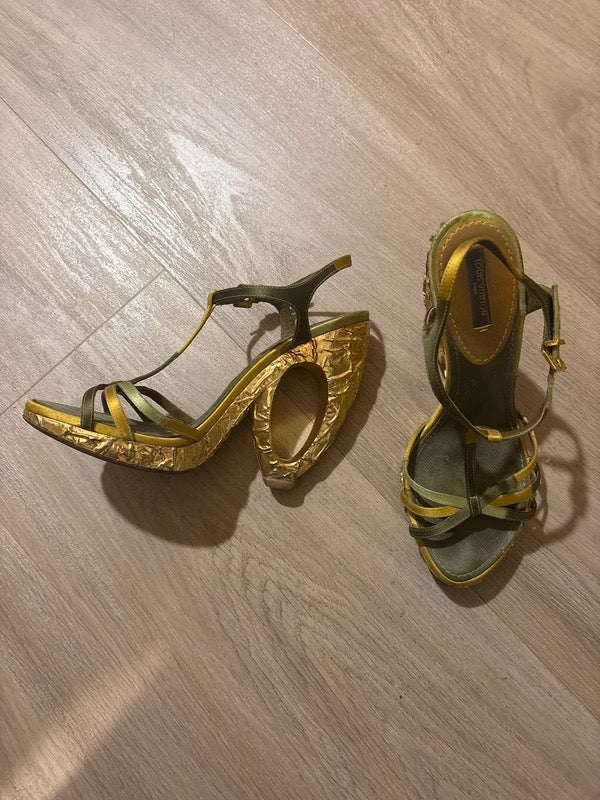 Louis Vuitton Gold Wedges - 38.5