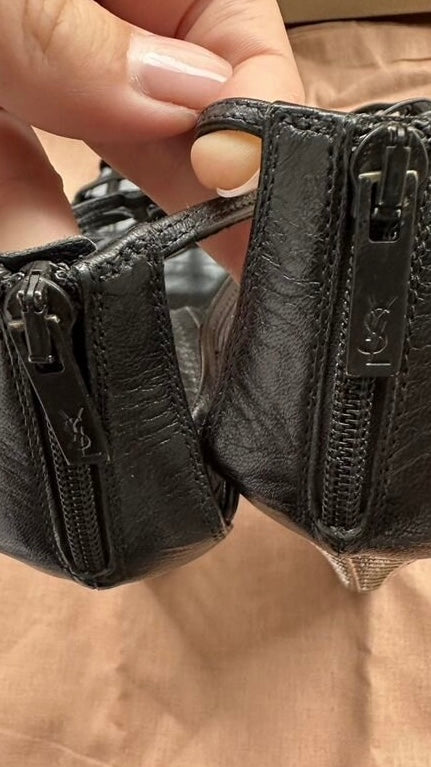 YSL Cage Heels Black with Silver Heel - 41